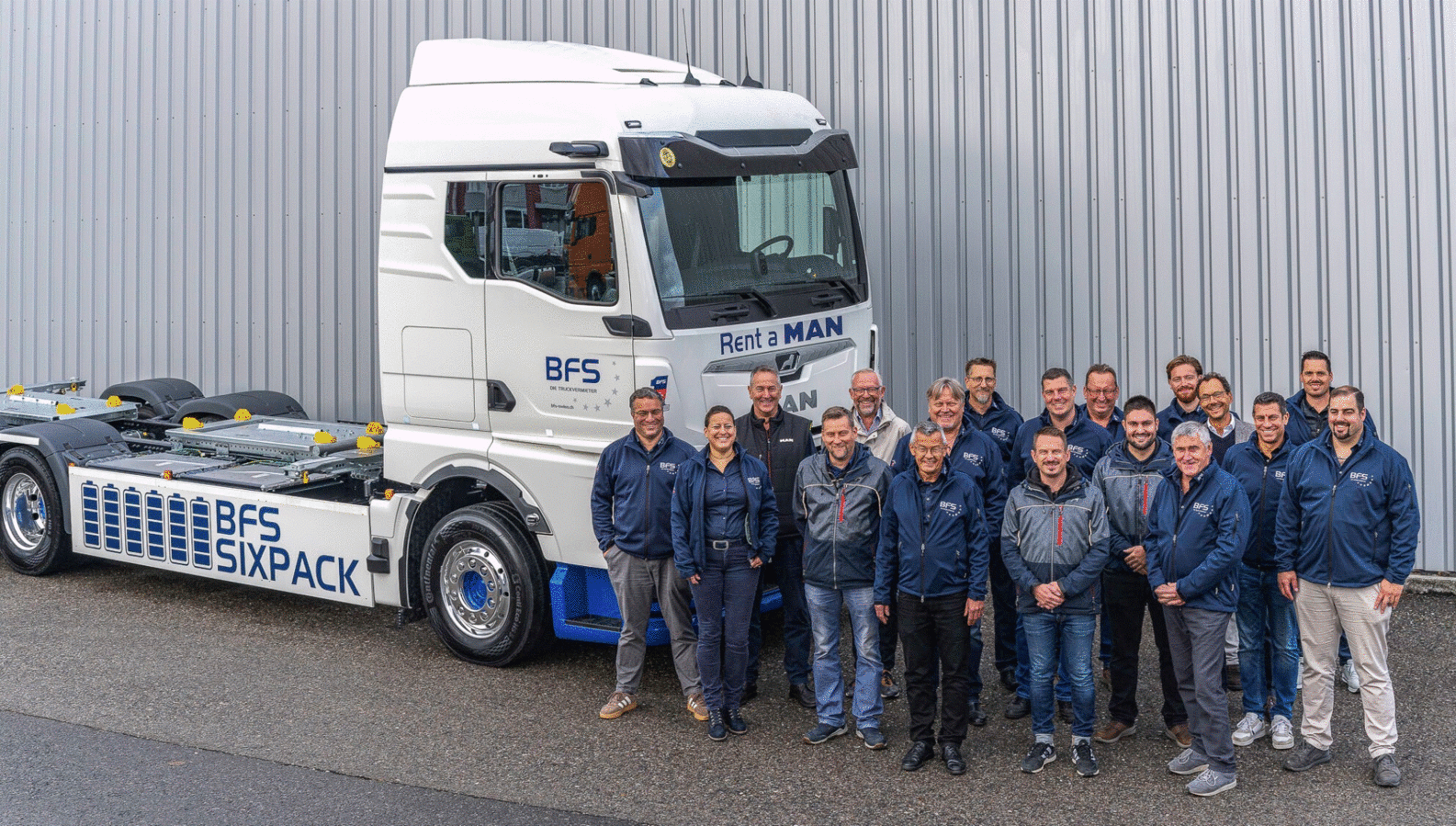 Unter dem Motto „BFS Drive the Future“ feierte die BFS Business Fleet Swiss kürzlich gemeinsam mit ihren fünf Kooperationspartnern am Standort Emmen einen wichtigen Meilenstein für die Elektromobilität in der Schweiz: die symbolische Übergabe des ersten vollelektrischen MAN eTGX Wechselbrücken-Fahrzeugs zum Einsatz als Mietfahrzeug. In einem feierlichen Rahmen wurden die Schlüssel von MAN Truck und Bus an BFS Business Fleet Swiss übergeben.